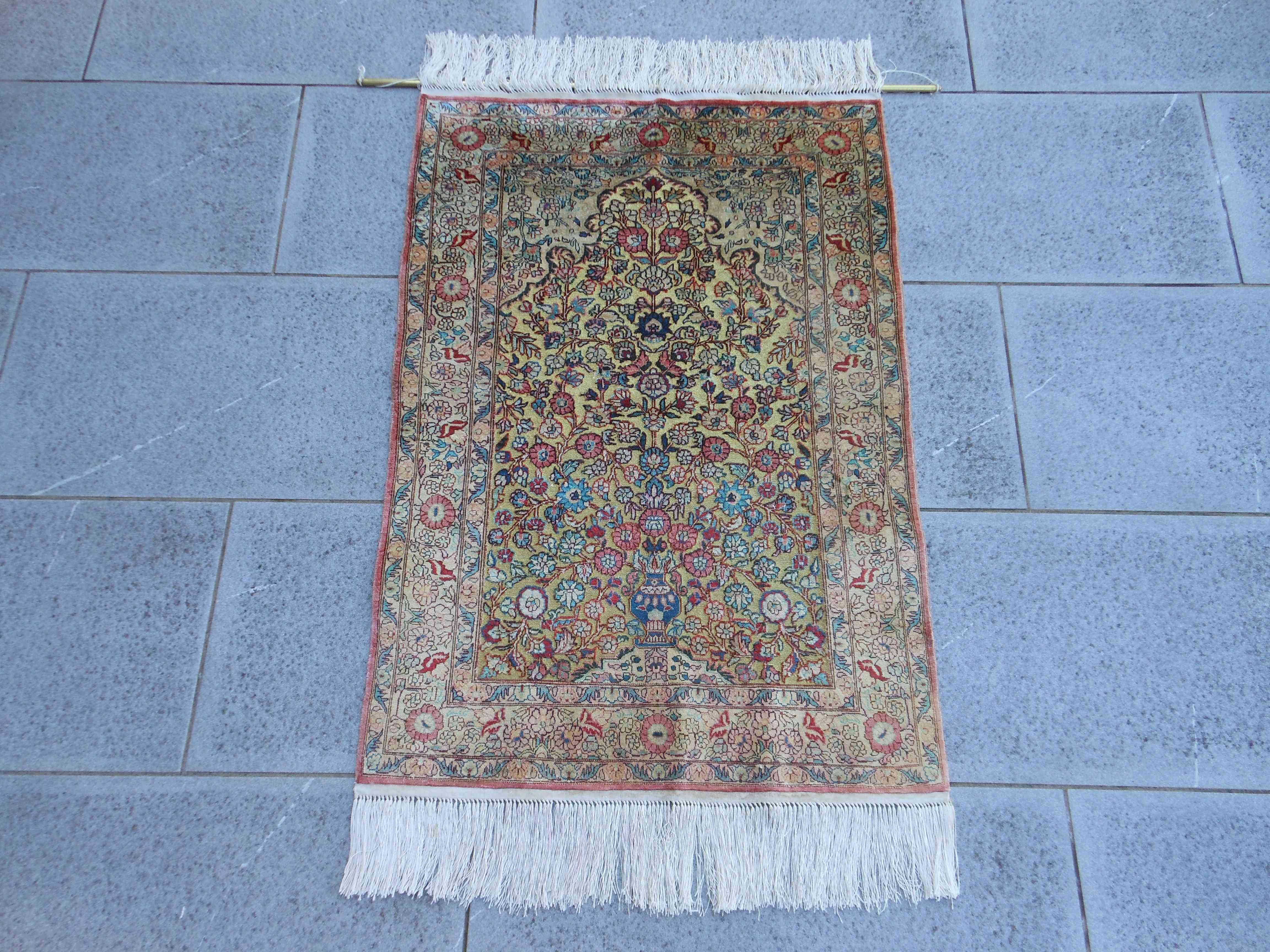 CHINA SILK & GOLD – TAPPETO – CINA – RECENTE – 91 X 62 cm – codice.0459 Anche questo esemplare dell’arte cinese dell’ annodatura della seta presenta il decoro a preghiera con finestra… CHINA SILK & GOLD – TAPPETO – CINA – RECENTE – 91 X 62 cm – codice.0459