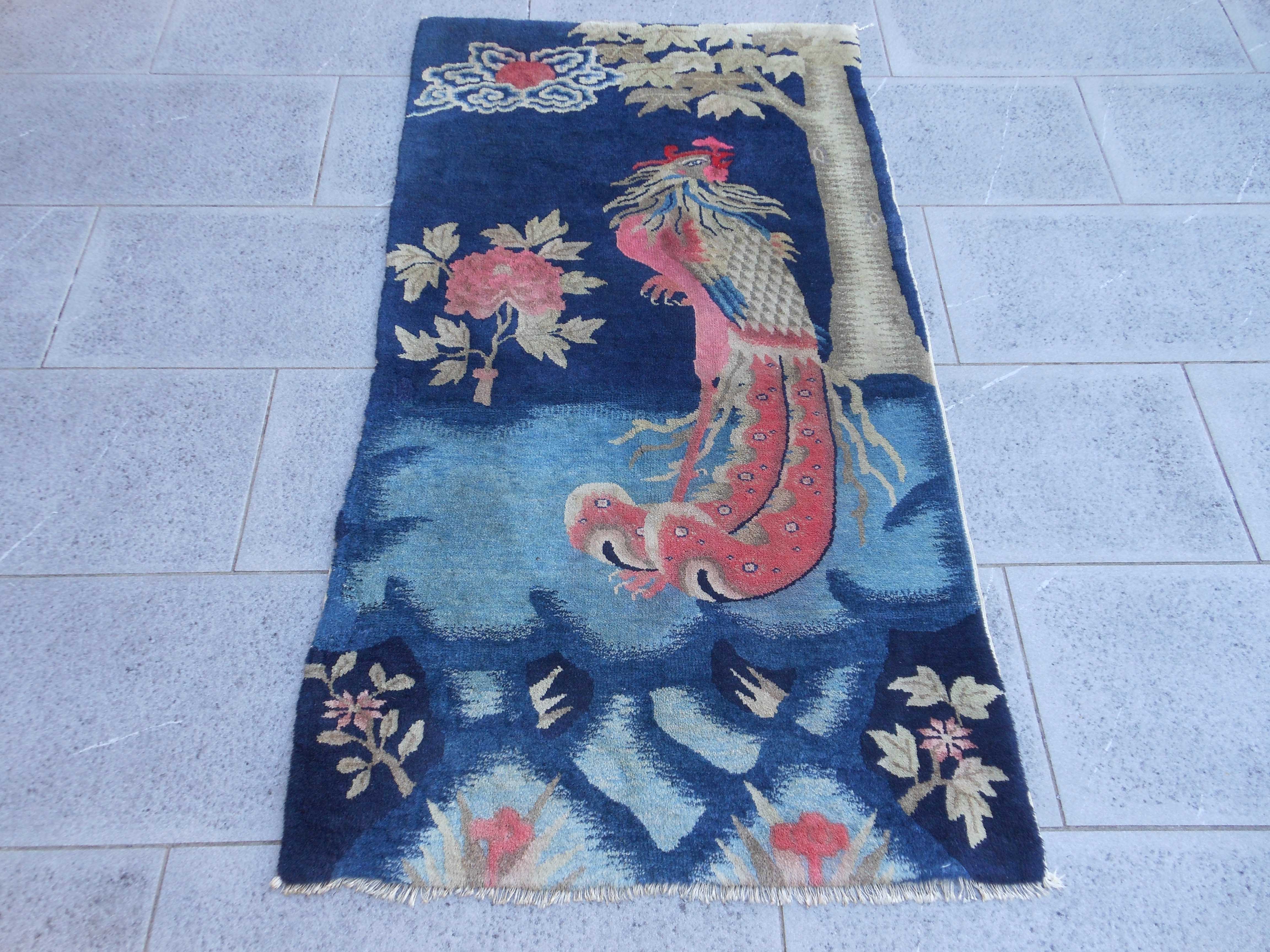 PEKINO – TAPPETO – CINA – ANTICO – 140 X 77 cm – codice.0436 La fenice, simbolo zoomorfo dell’ imperatrice, ha reminiscenze storiche ancestrali che sprofondano nella notte dei tempi… PEKINO – TAPPETO – CINA – ANTICO – 140 X 77 cm – codice.0436