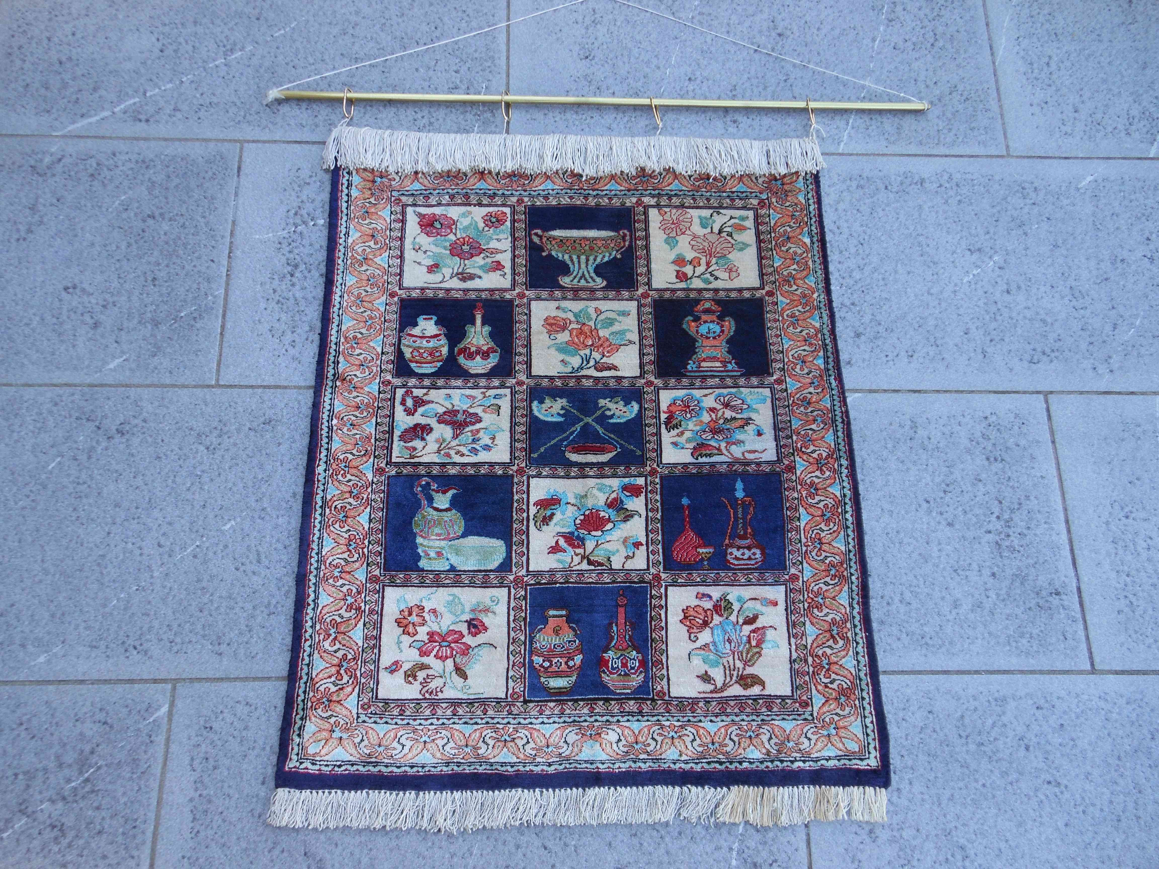 QUM SILK – TAPPETO – PERSIA – RECENTE – 83 X 58 cm – codice.0442 Ha circa 50 anni questo piccolo tappeto figurato di Qum completamente in pura seta, annodato con… QUM SILK – TAPPETO – PERSIA – RECENTE – 83 X 58 cm – codice.0442