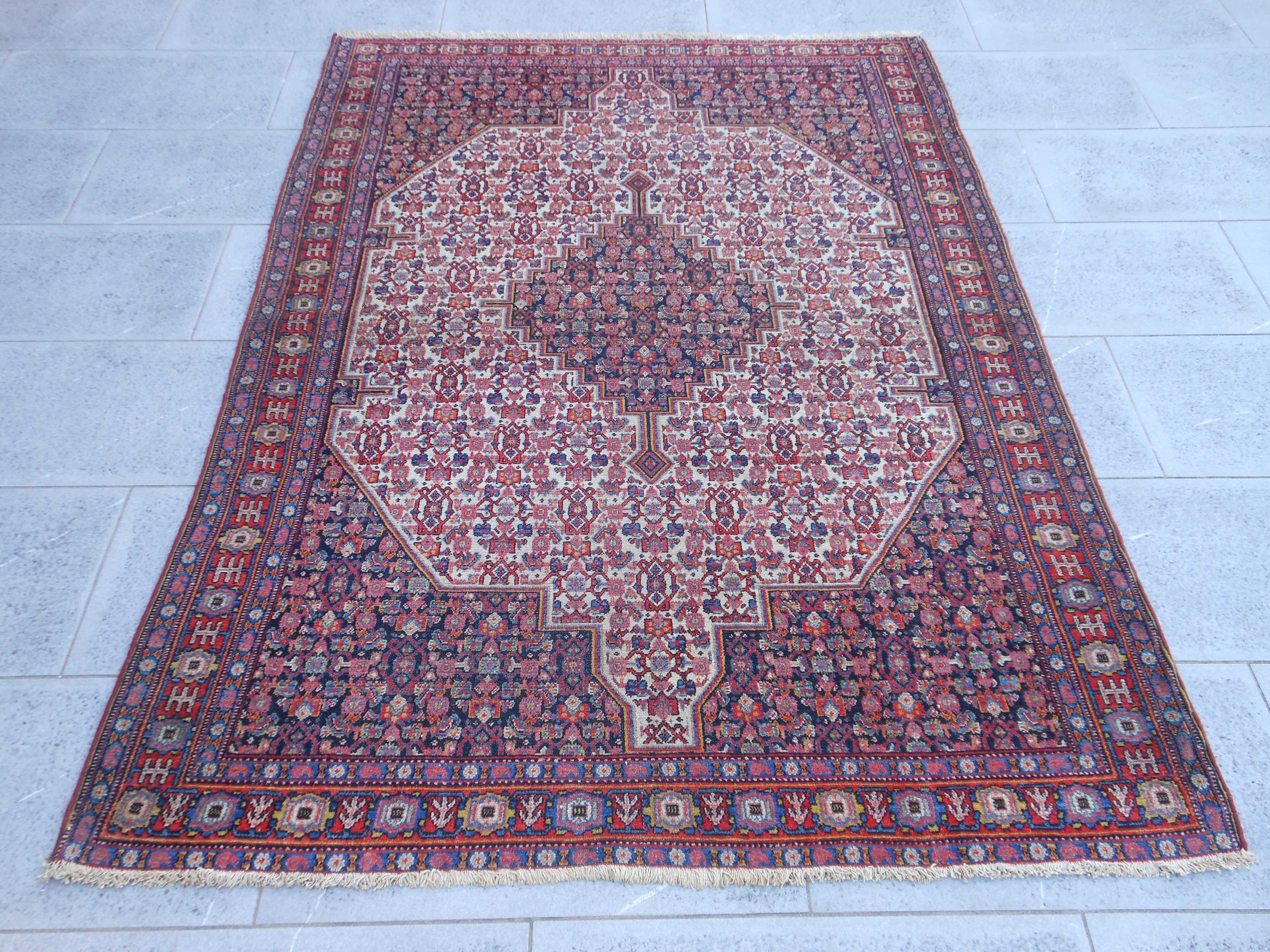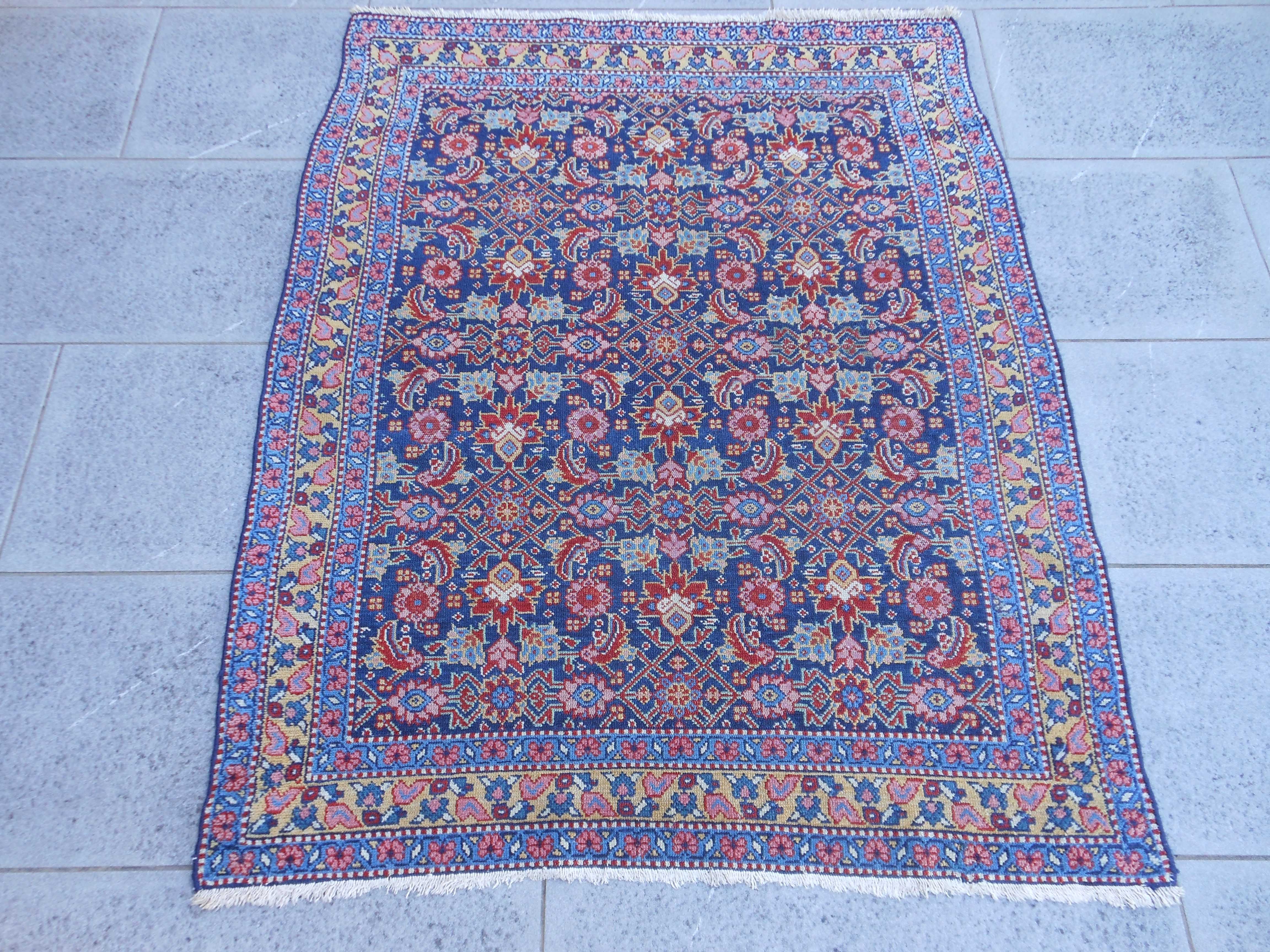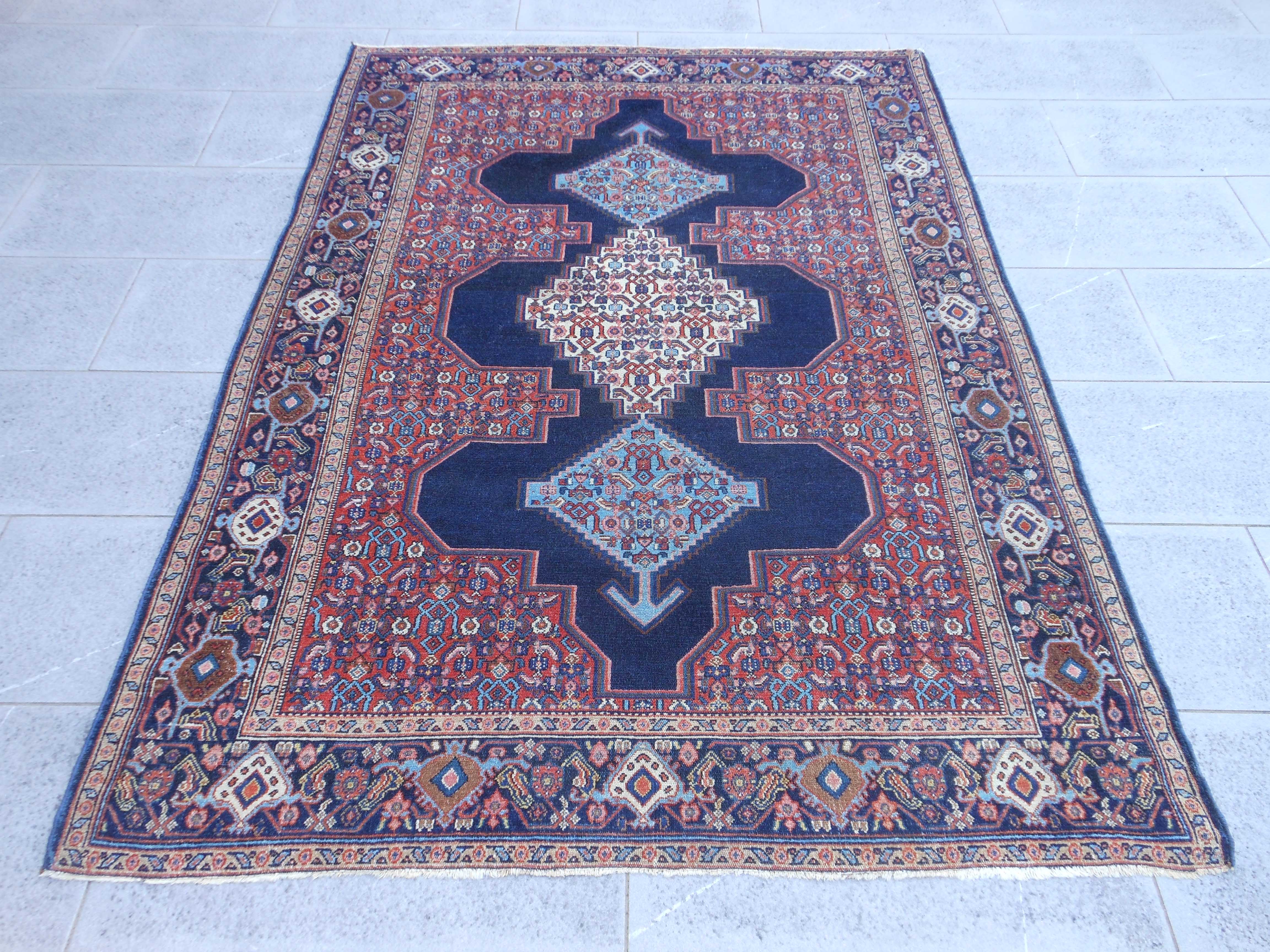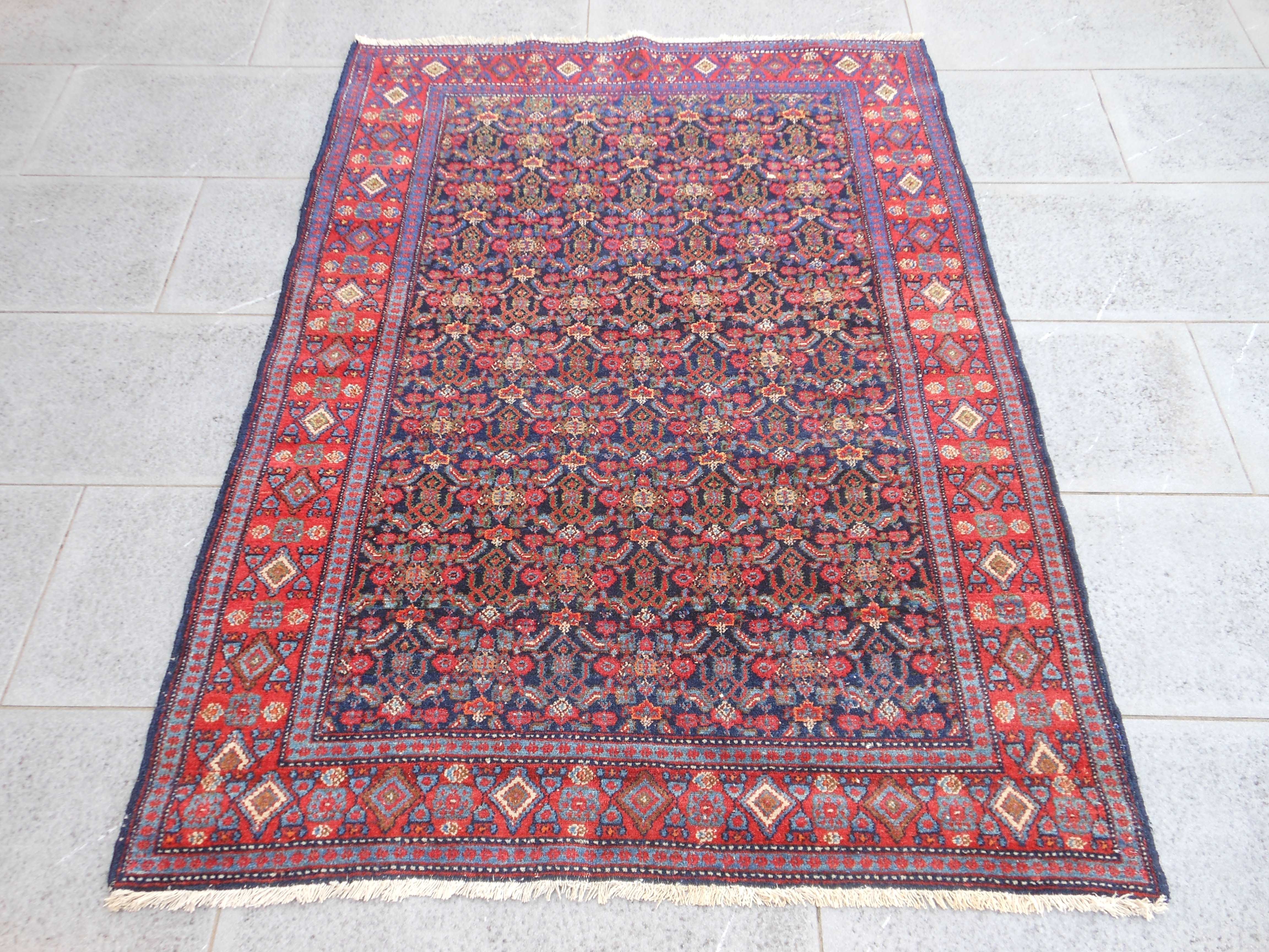 SENNEH – TAPPETO – PERSIA – ANTICO – 184 X 136 cm – codice.0375 Prestigioso tappeto curdo di Senneh di fine ‘800. L’ interpretazione del motivo “heratì” di campo è… SENNEH – TAPPETO – PERSIA – ANTICO – 184 X 136 cm – codice.0375