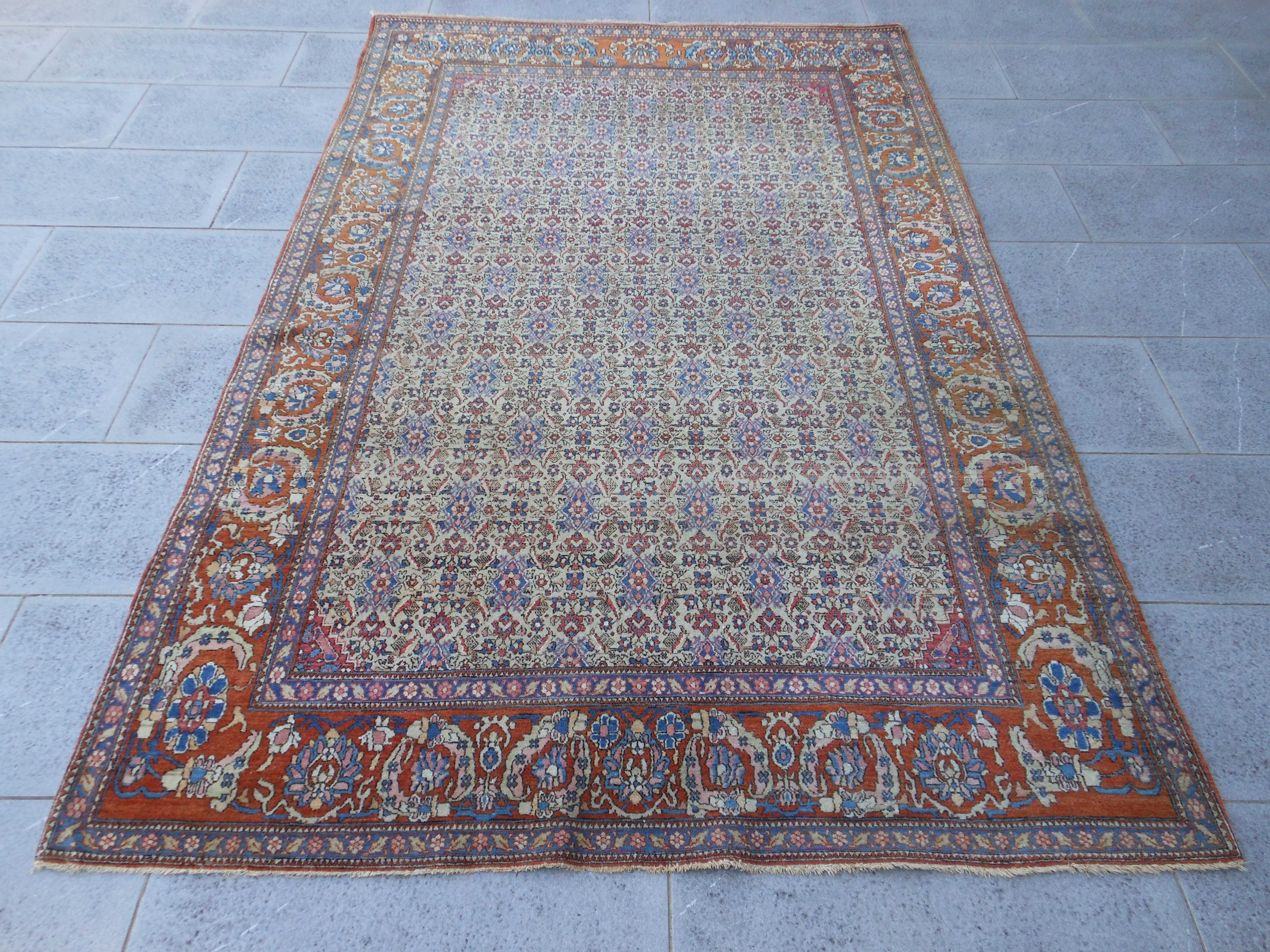 ESFAHAN – TAPPETO – PERSIA – ANTICO – 201 X 143 cm – codice.0366 Antico ( fine ‘800 ) tappeto di Esfahan a motivo classicamente floreale, con tutto il carisma… ESFAHAN – TAPPETO – PERSIA – ANTICO – 201 X 143 cm – codice.0366