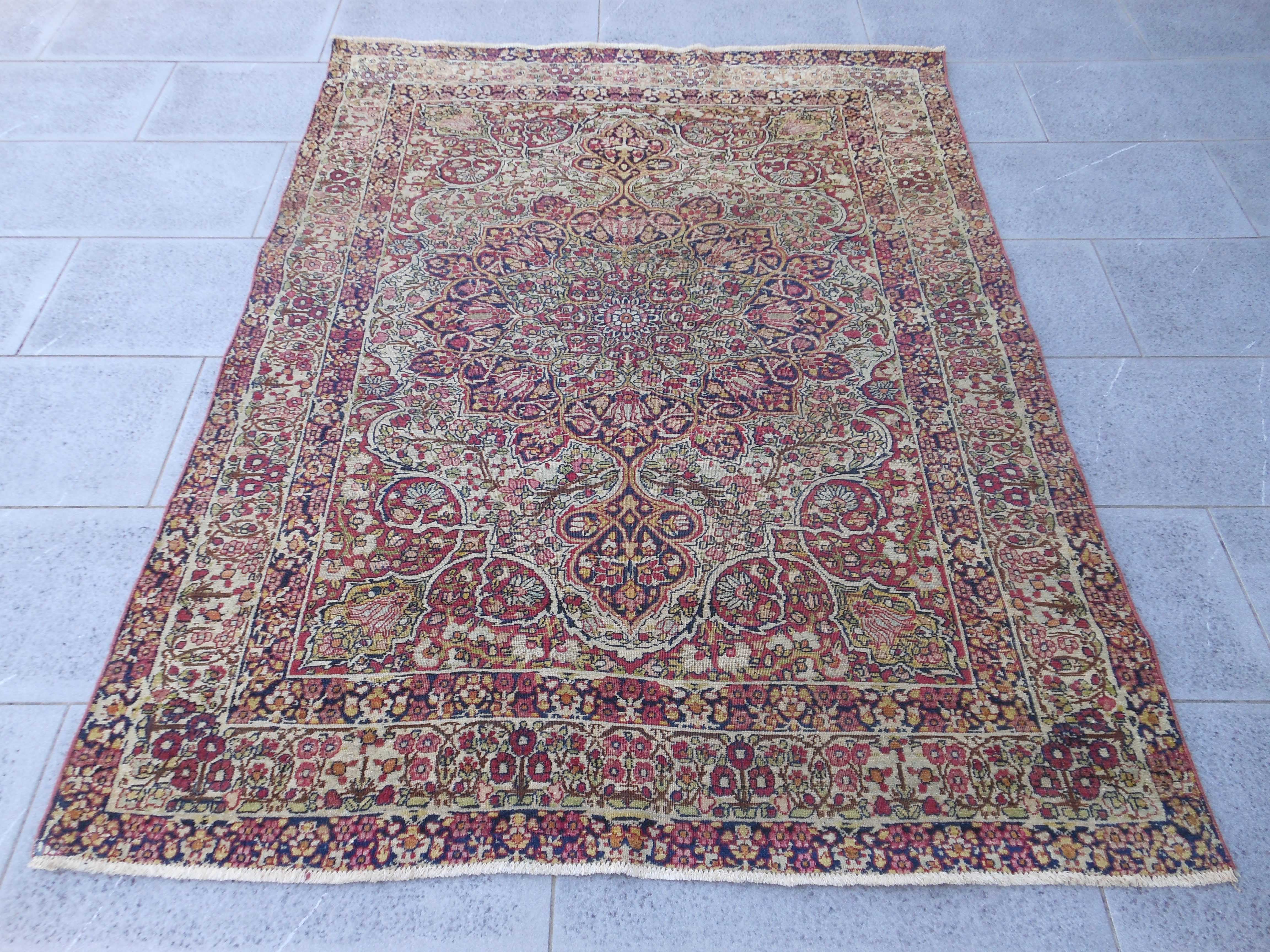 KERMAN – TAPPETO – PERSIA – ANTICO – 181 X 135 cm – codice.0365 Dalla fine dell’ Ottocento è giunto fin qui, vivo e vegeto questo sapido esemplare di Kerman… KERMAN – TAPPETO – PERSIA – ANTICO – 181 X 135 cm – codice.0365