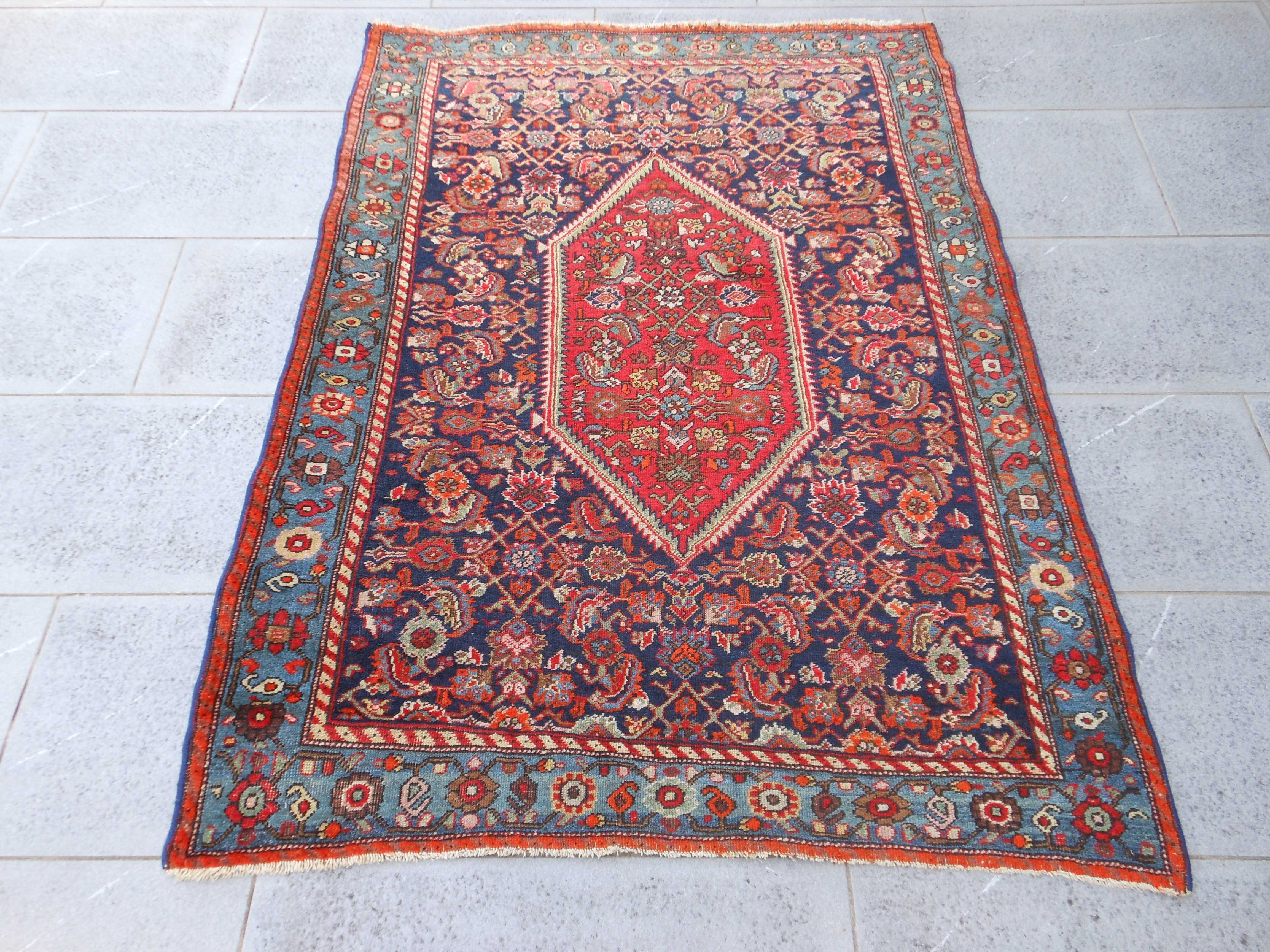 MALAYER – TAPPETO – PERSIA – ANTICO – 150 X 117 cm – codice.0369 Al tempo della prima guerra mondiale risale questo manufatto di Malayer a motivo “boteh” a tutto… MALAYER – TAPPETO – PERSIA – ANTICO – 150 X 117 cm – codice.0369