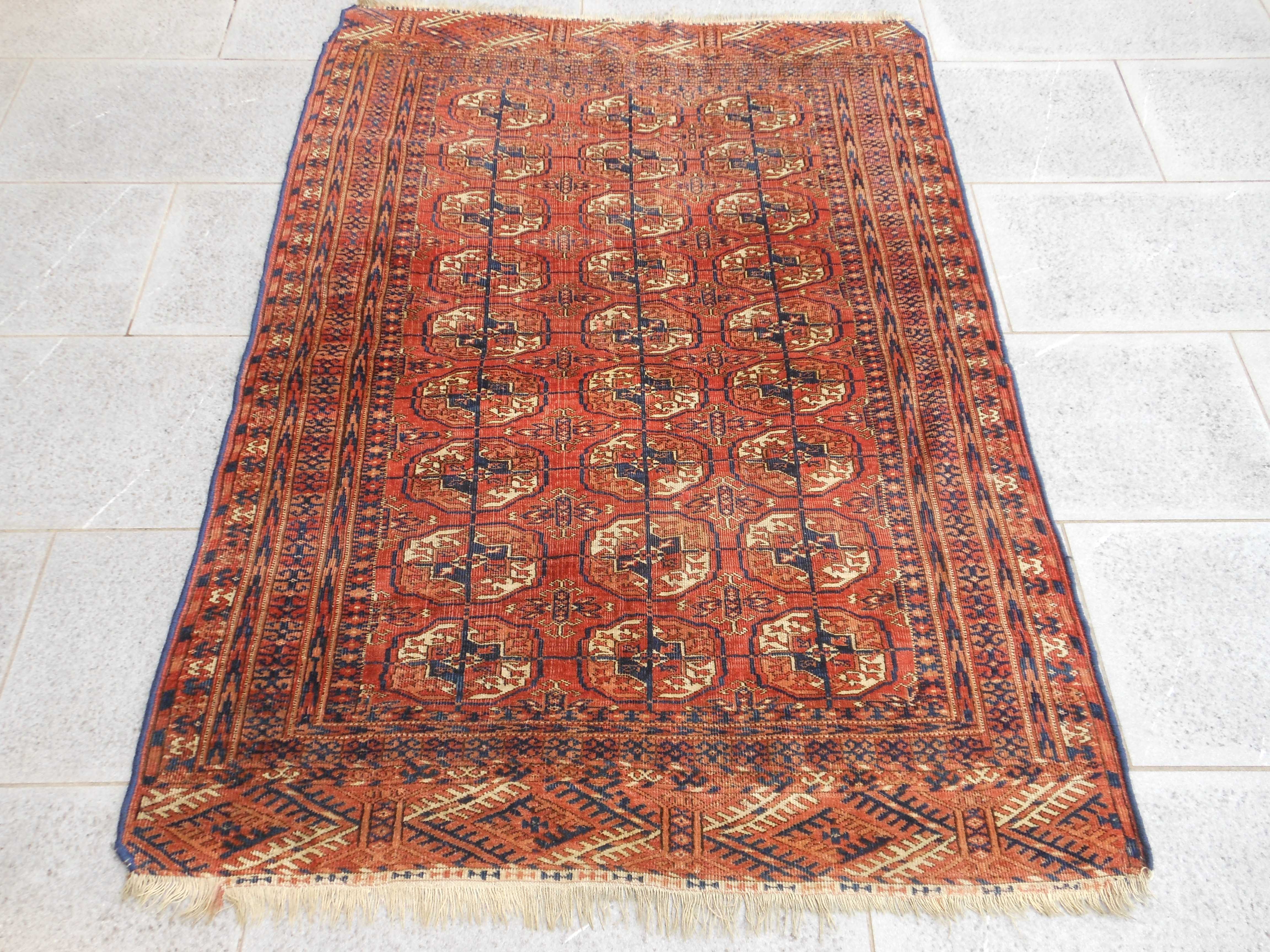 BOUCHARA – TAPPETO – TURKMENISTAN – ANTICO – 140 X 105 cm – codice.0293 Antichissimo esemplare di tappeto di Bouchara della tribù dei Tekké, che mostra tutta la sua vetusta… BOUCHARA – TAPPETO – TURKMENISTAN – ANTICO – 140 X 105 cm – codice.0293