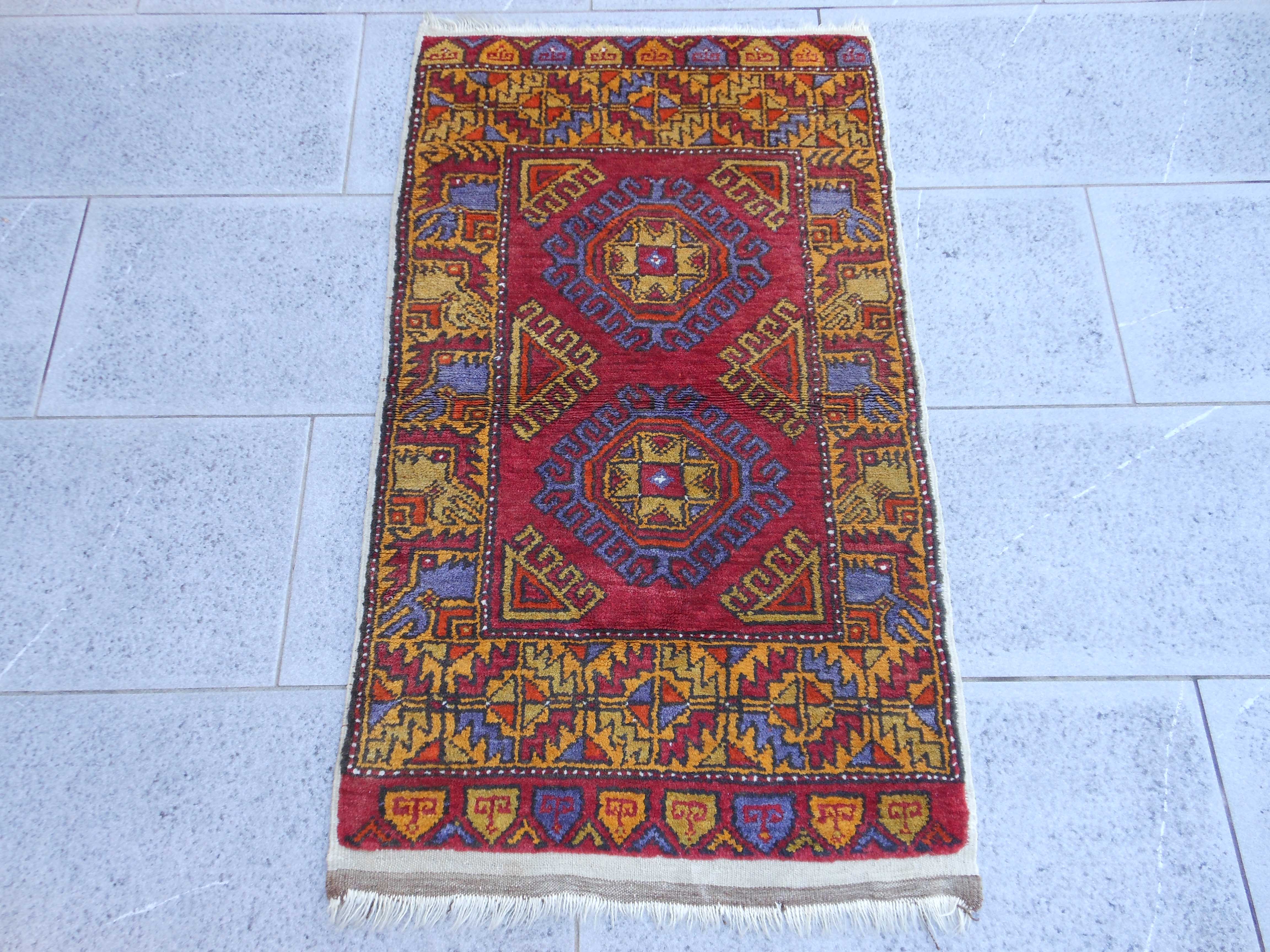 KONYA – TAPPETO – TURCHIA – ANTICO – 103 X 60 cm – codice.0296 Solare piccolo Yastik della zona di Konya dove il rosso e il giallo la fanno da… KONYA – TAPPETO – TURCHIA – ANTICO – 103 X 60 cm – codice.0296