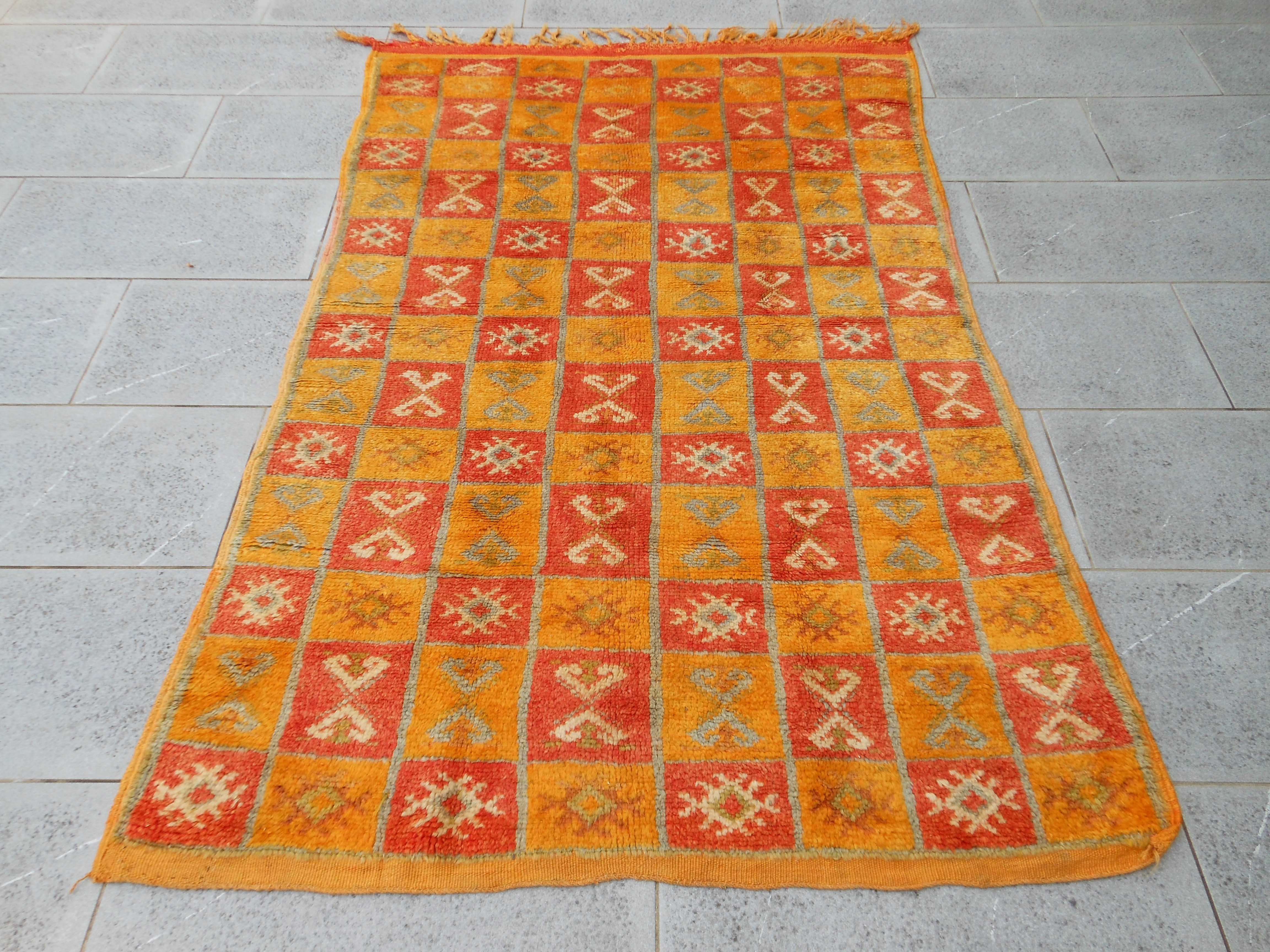 BERBER – TAPPETO – MAROCCO – ANTICO – 178 X 110 cm – codice.0287 Motivo a scacchiera con l’alternanza delle due tinte madri della produzione Berbera: il rosso arancio e… BERBER – TAPPETO – MAROCCO – ANTICO – 178 X 110 cm – codice.0287