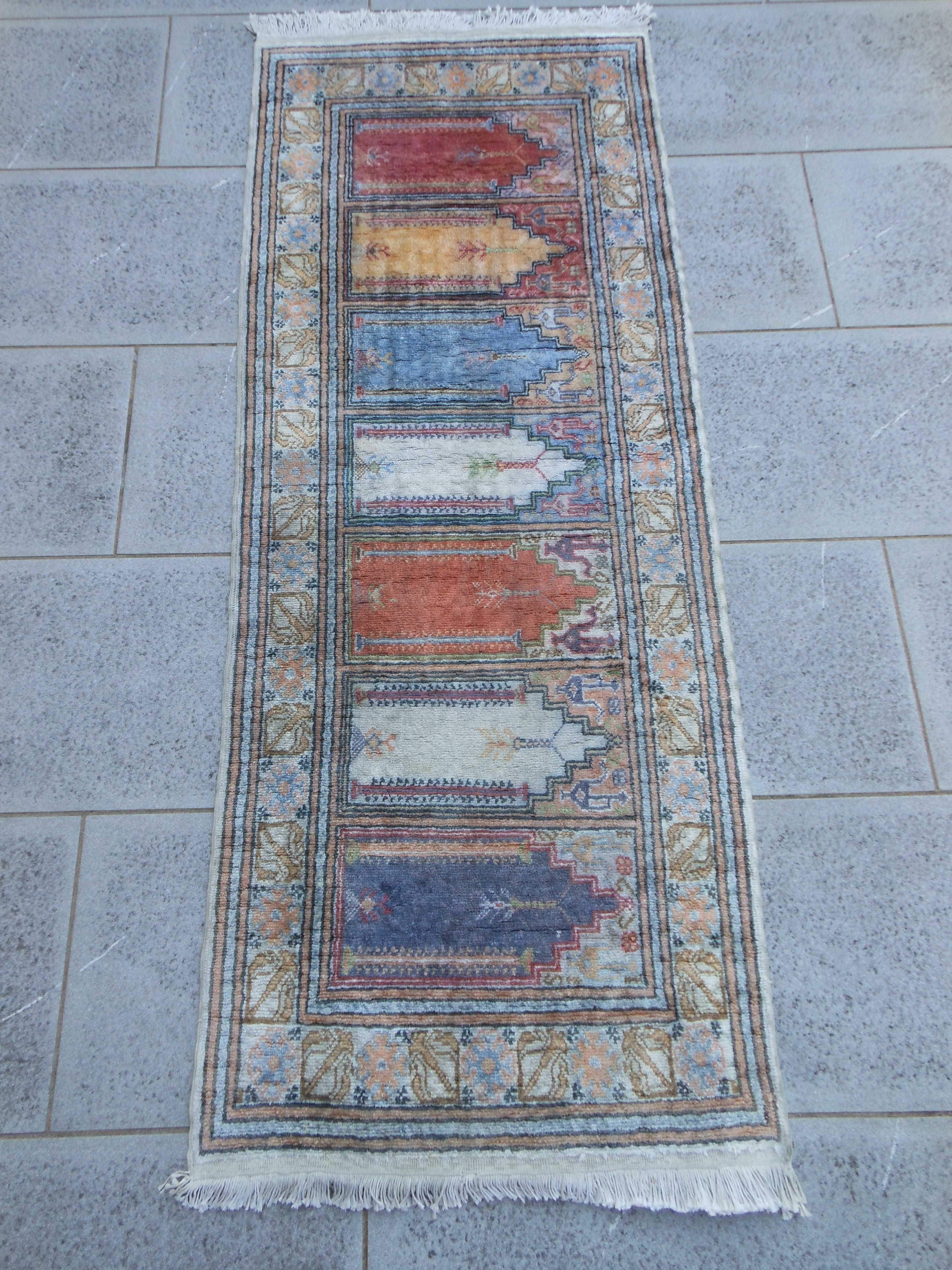KAYSERI – TAPPETO – TURCHIA – VECCHIO – 210 X 88 cm – codice.0230 SAF di Kayseri della metà del ‘900, molto bella e pastellata. Serie di finestre di moschea… KAYSERI – TAPPETO – TURCHIA – VECCHIO – 210 X 88 cm – codice.0230