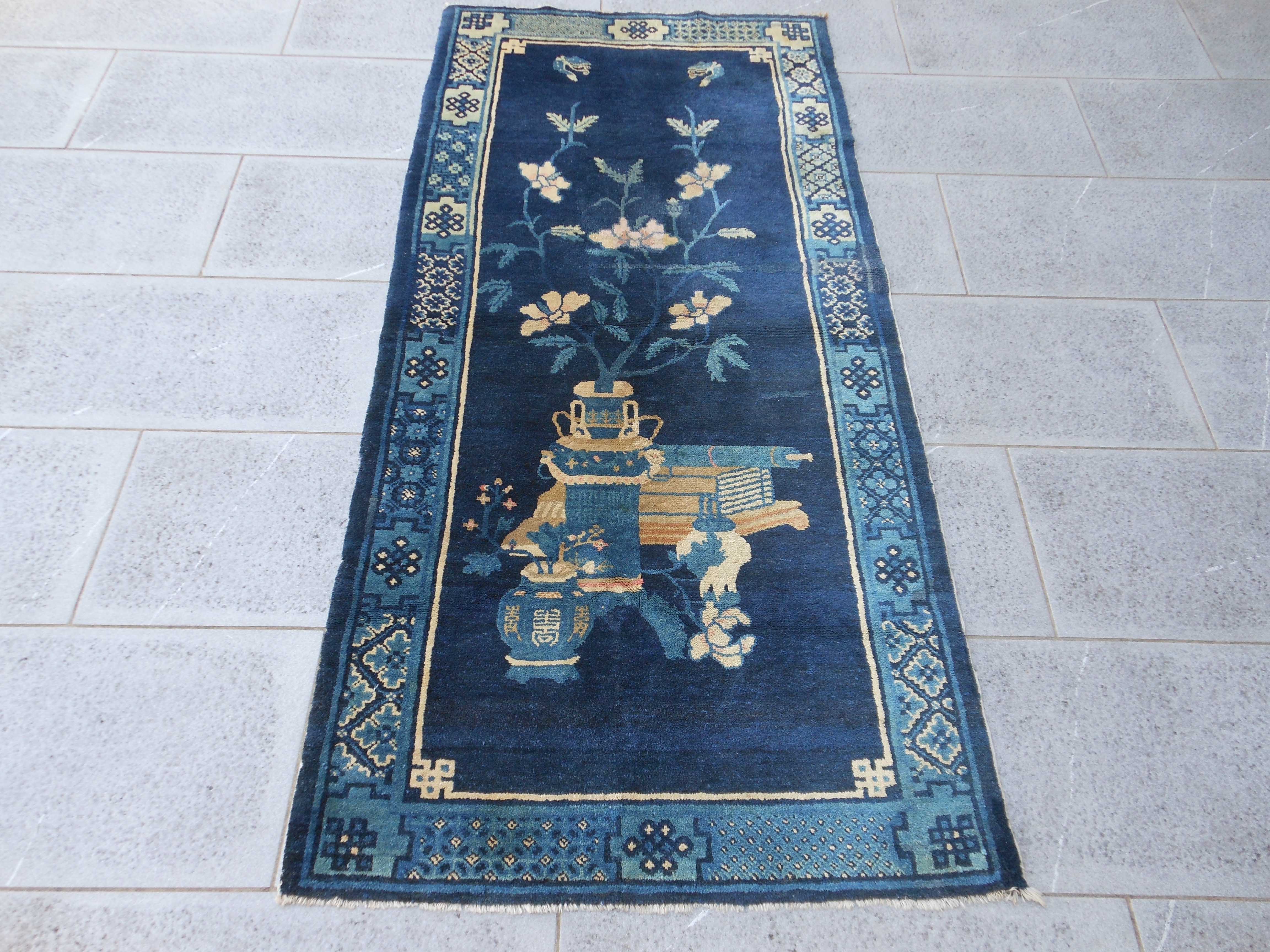 PEKINO – TAPPETO – CINA – ANTICO – 178 X 81 cm – codice.0214 Classica iconografia molto frequente nei manufatti cinesi antichi, a simboleggiare metaforicamente l’ambiente domestico, la famiglia e… PEKINO – TAPPETO – CINA – ANTICO – 178 X 81 cm – codice.0214