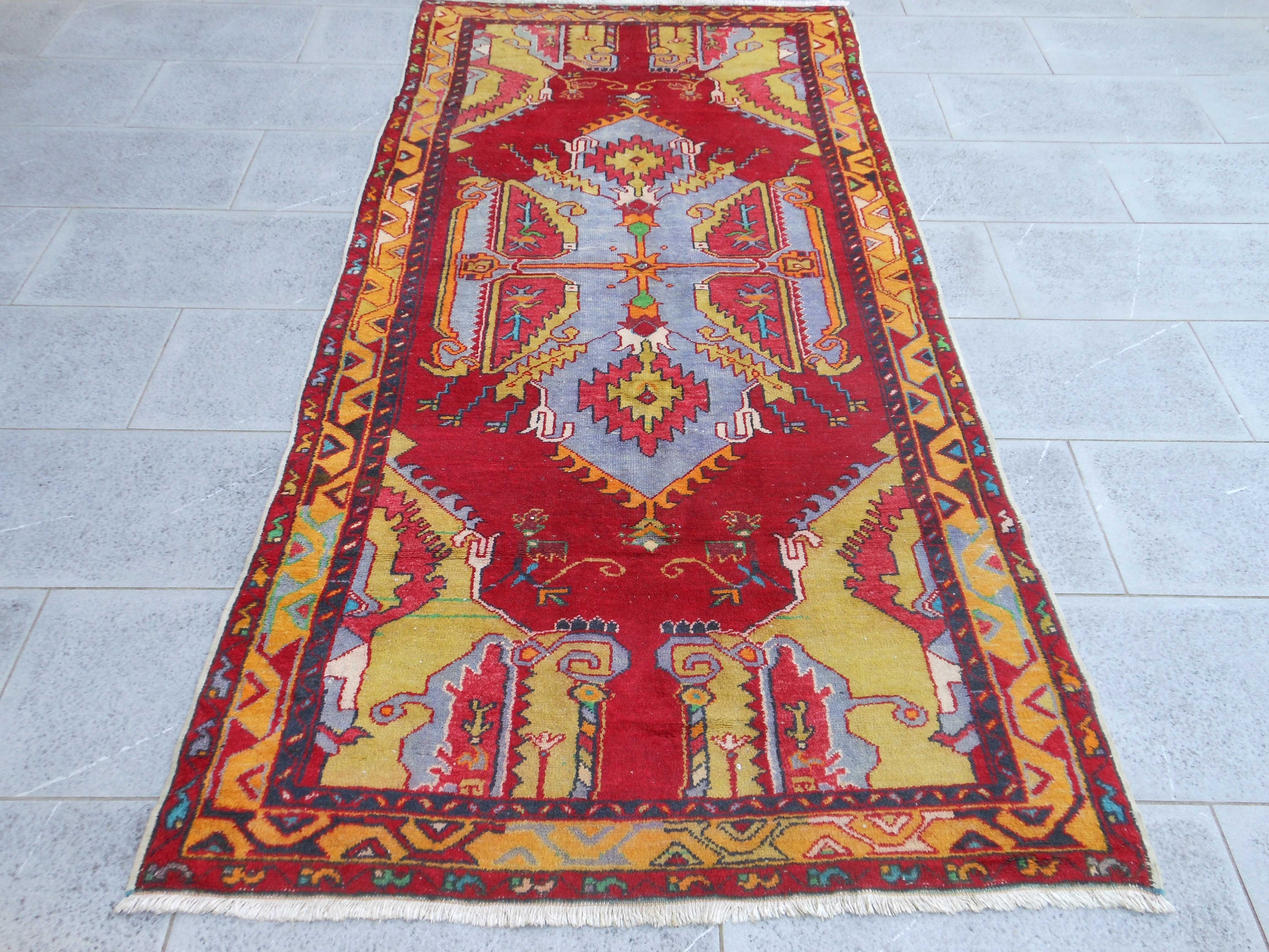 ANATOL – TAPPETO – TURCHIA – VECCHIO – 230 X 113 cm – codice.0217 Coloratissimo, dal rosso e dal giallo quasi sfacciati, esemplare della Anatolia centrale che risale al secondo… ANATOL – TAPPETO – TURCHIA – VECCHIO – 230 X 113 cm – codice.0217