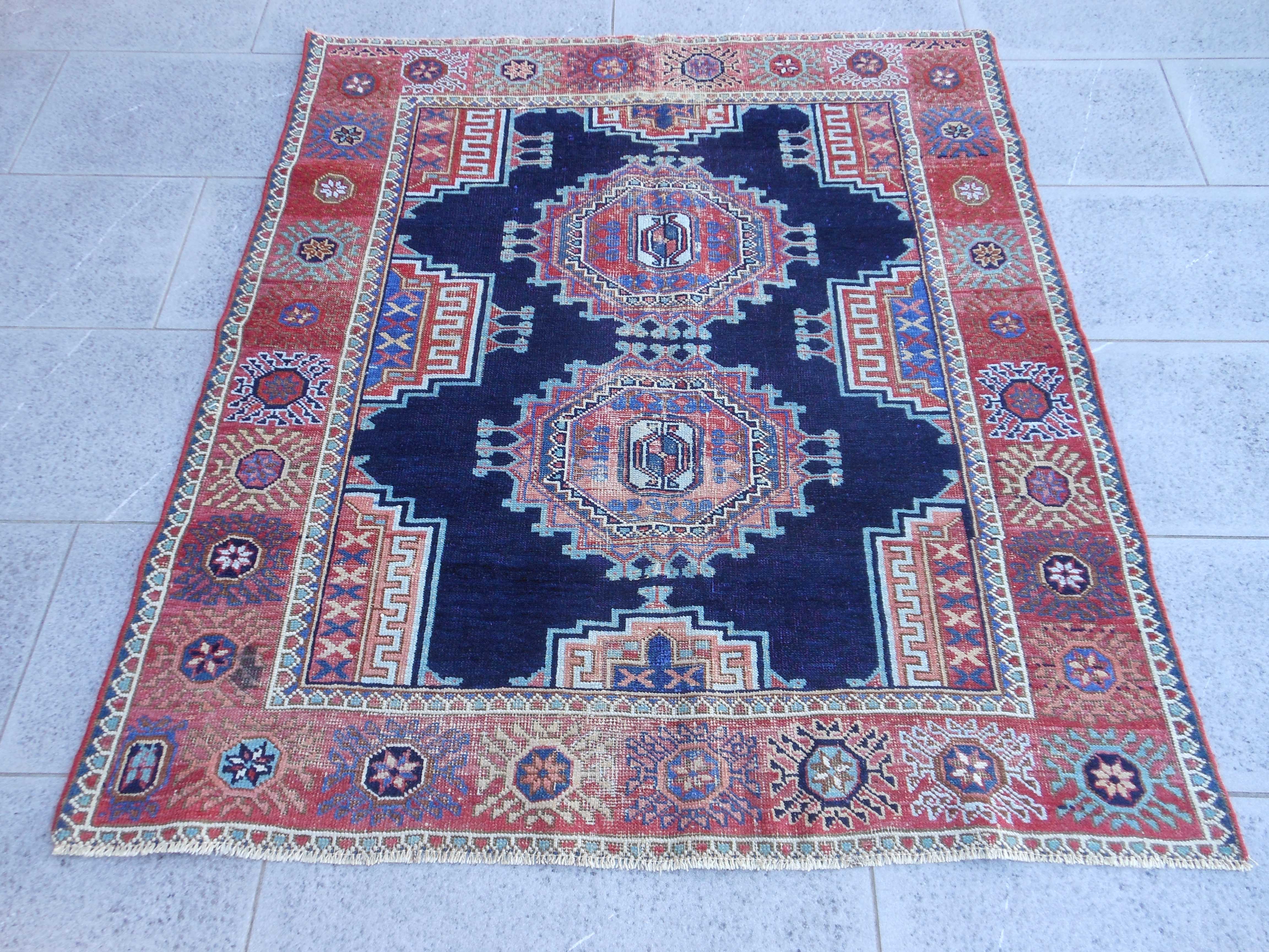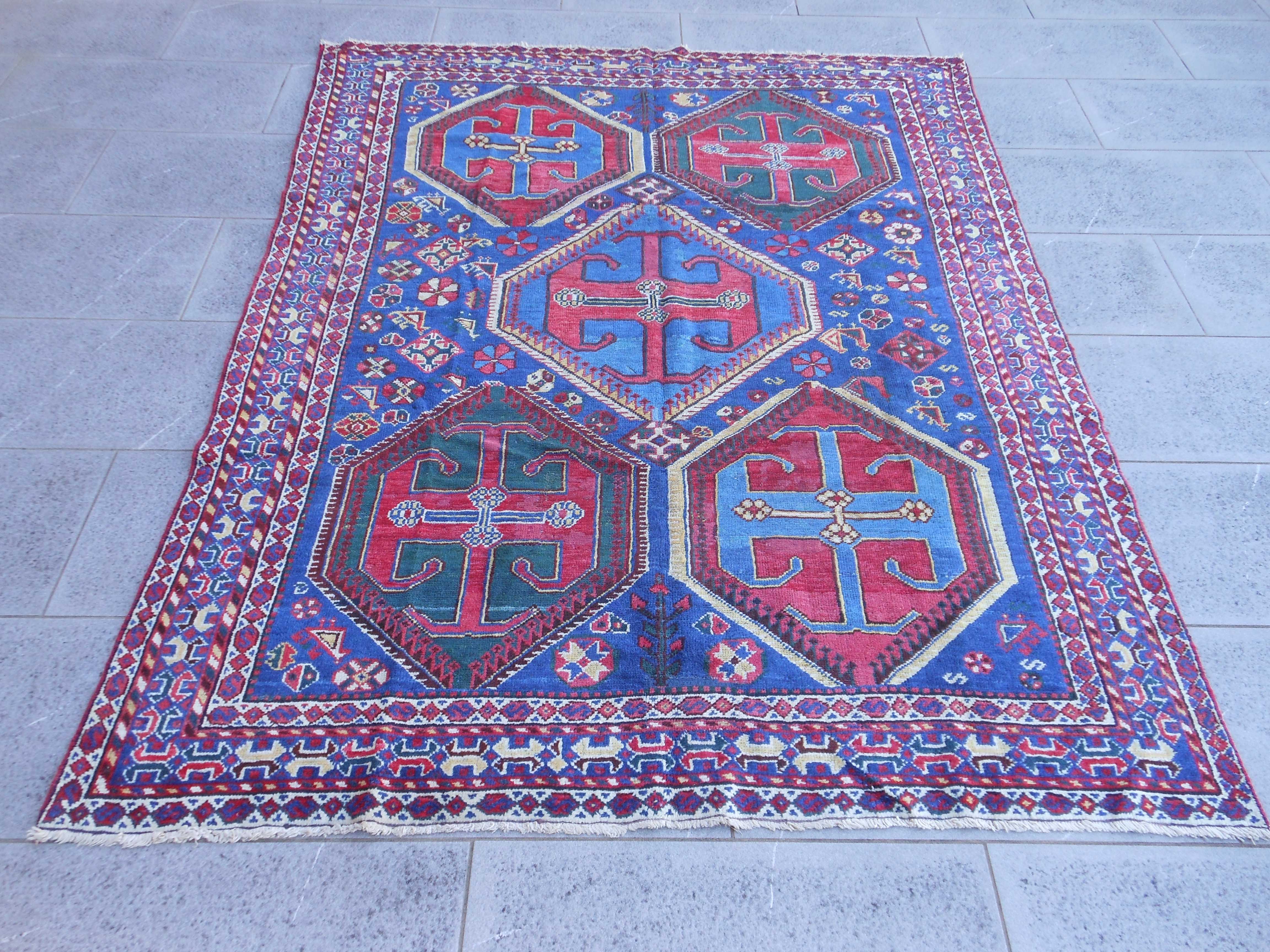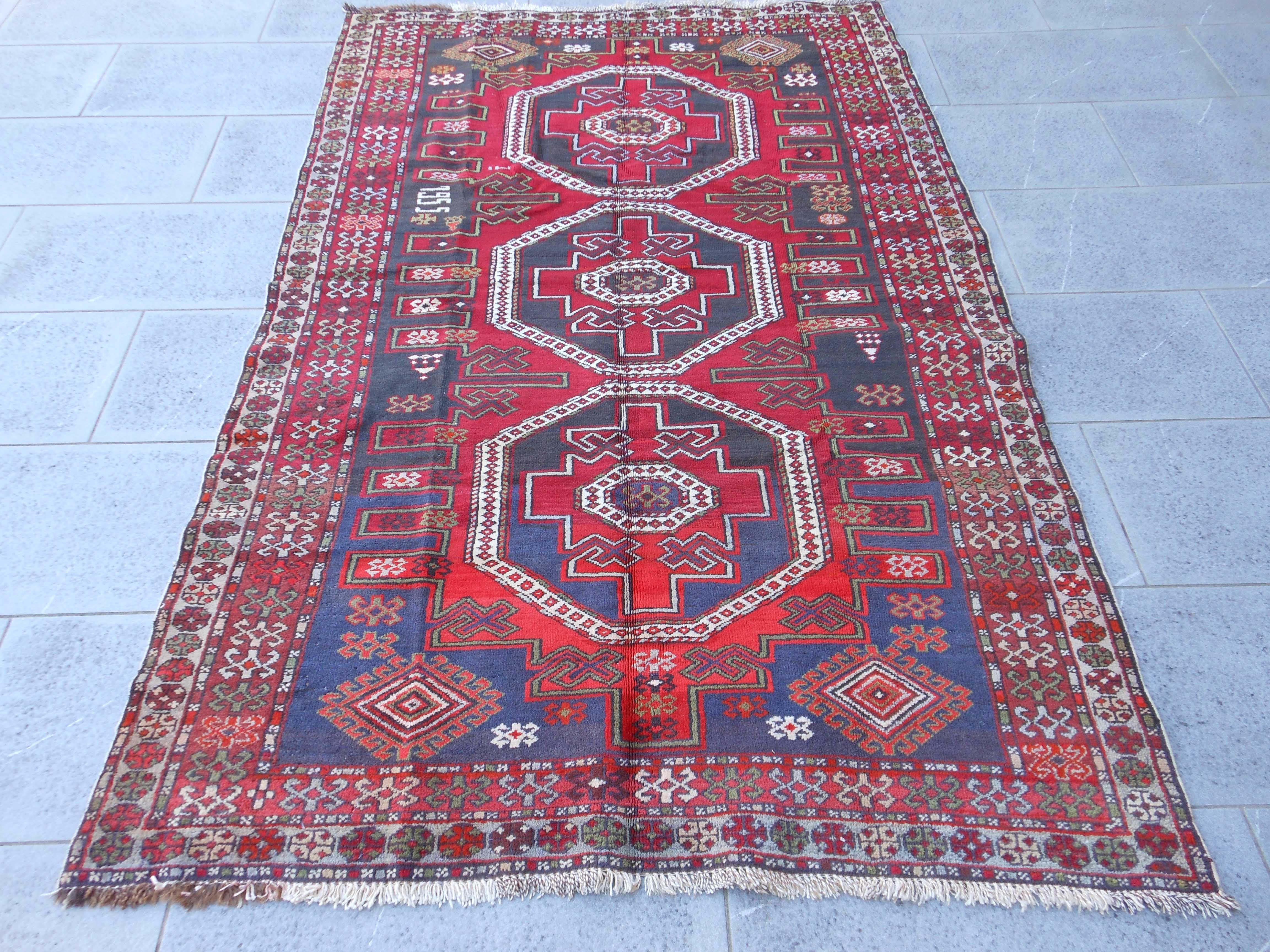 ARMENIAN – TAPPETO – CAUCASO – VECCHIO – 204 X 130 cm – codice. 0180 Proviene dal Caucaso Armeno questo tappeto che porta la datazione 1955. Mostra tre scudi ottagonali con… ARMENIAN – TAPPETO – CAUCASO – VECCHIO – 204 X 130 cm – codice. 0180