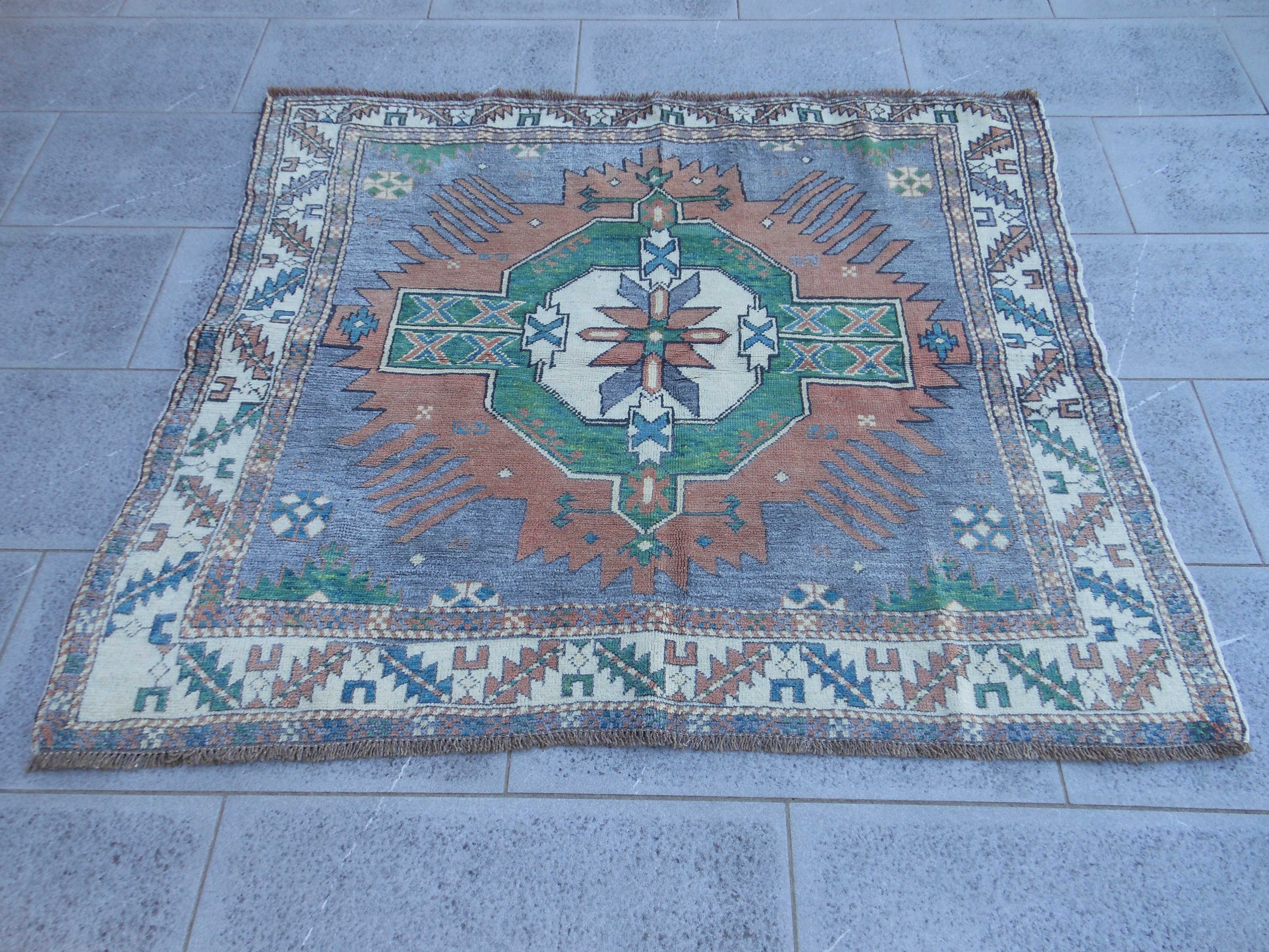 KONYA – TAPPETO – TURCHIA – ANTICO – 132 X 126 cm – codice.0187 Tappeto Turco di Konya, quadrateggiante e con motivo centrale cruciforme. Tutto in lana morbida, ha i… KONYA – TAPPETO – TURCHIA – ANTICO – 132 X 126 cm – codice.0187