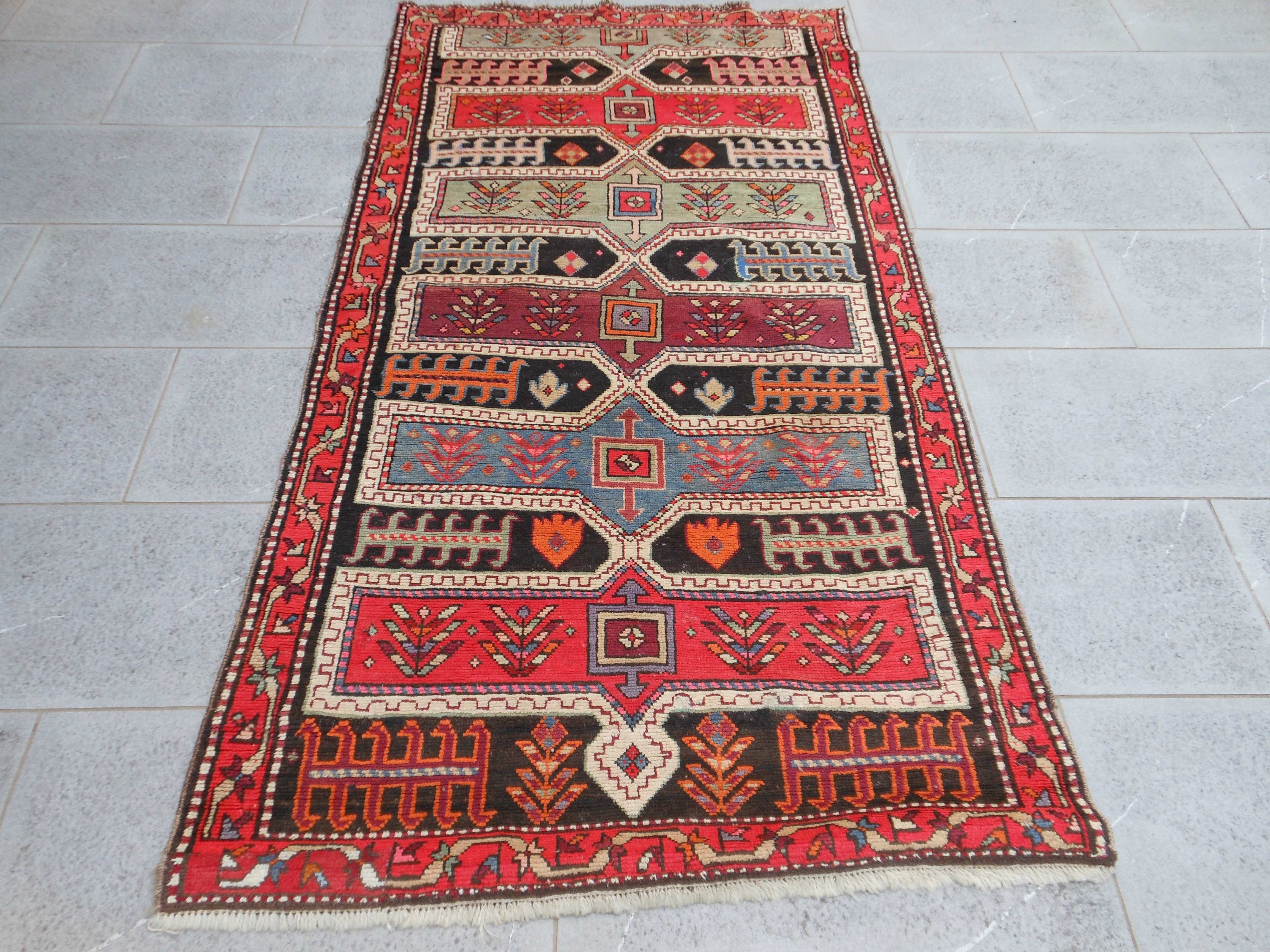 KAZAK – TAPPETO – CAUCASO – ANTICO – 190 X 100 cm – codice.0165 Kazak a scudi, mezza corsia annodata più di un secolo fa in qualche villaggio del Piccolo… KAZAK – TAPPETO – CAUCASO – ANTICO – 190 X 100 cm – codice.0165