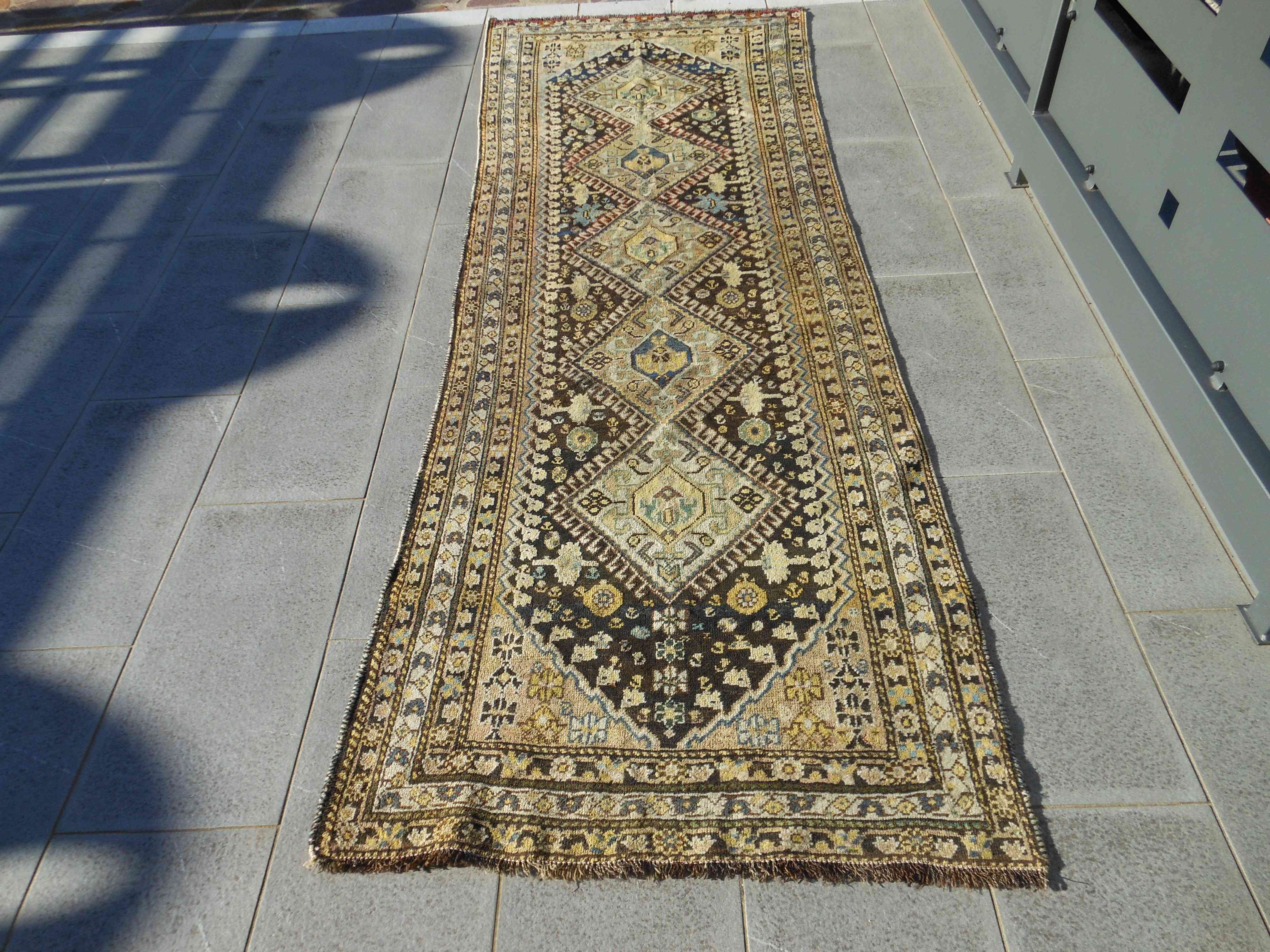 QASHQAI – TAPPETO – PERSIA – ANTICO – 280 X 90 cm – codice.0118 Antica corsia nomade dei Qashqai tutta in lana con una annodatura grossolana e qualche irregolarità nel… QASHQAI – TAPPETO – PERSIA – ANTICO – 280 X 90 cm – codice.0118