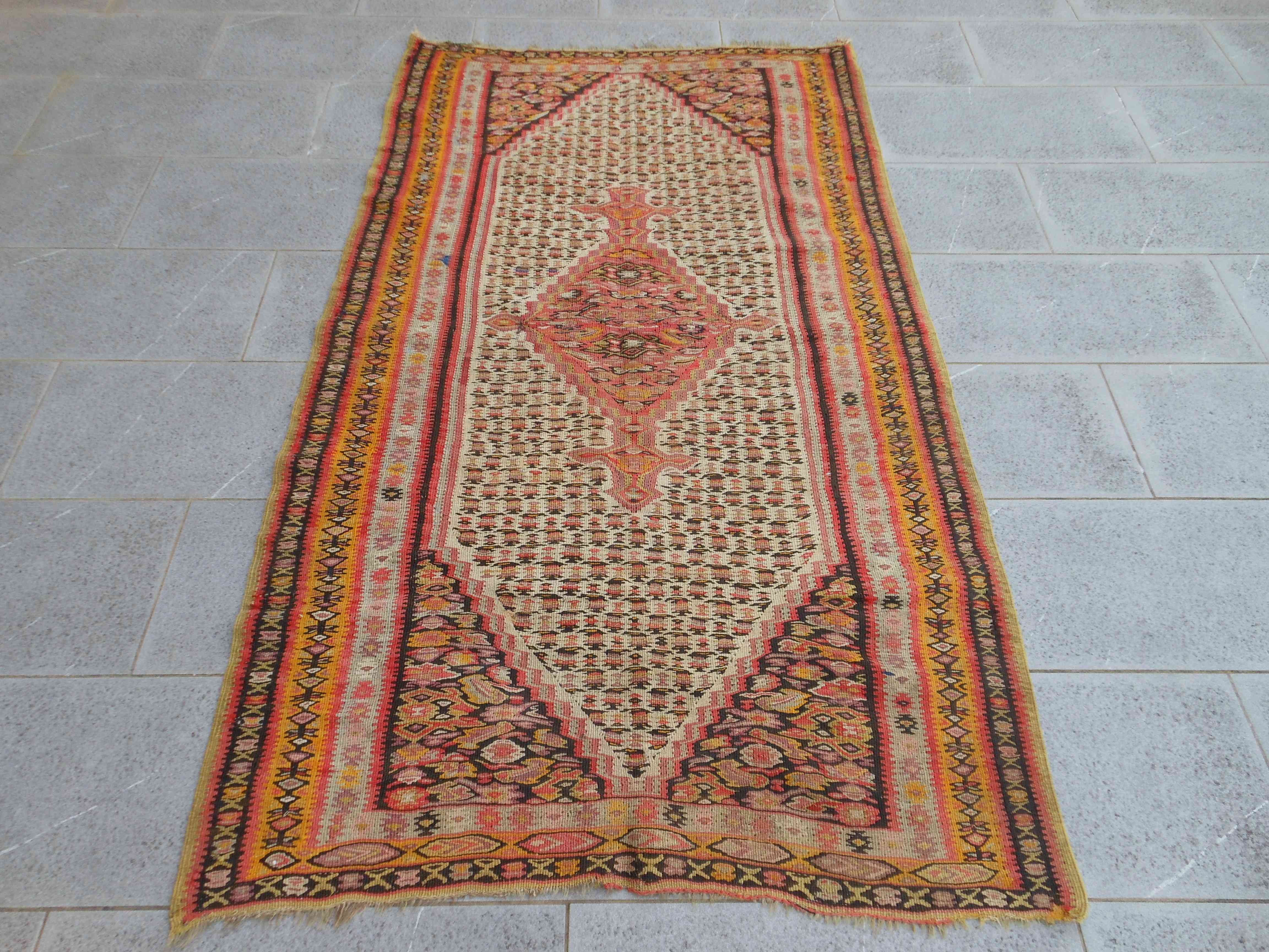 SENNEH – KILIM – PERSIA – ANTICO – 210 X 110 cm – codice.0511 Kilim di Senneh antico : lo si legge tutto nella patina dei colori dei filati, che… SENNEH – KILIM – PERSIA – ANTICO – 210 X 110 cm – codice.0511